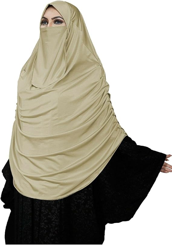 AKRILANE Niqab for Women | Face Covering Hijab | Satin Lycra Plain Stretchable Overhead Scarf Hijab Burka Niqab w/Frills